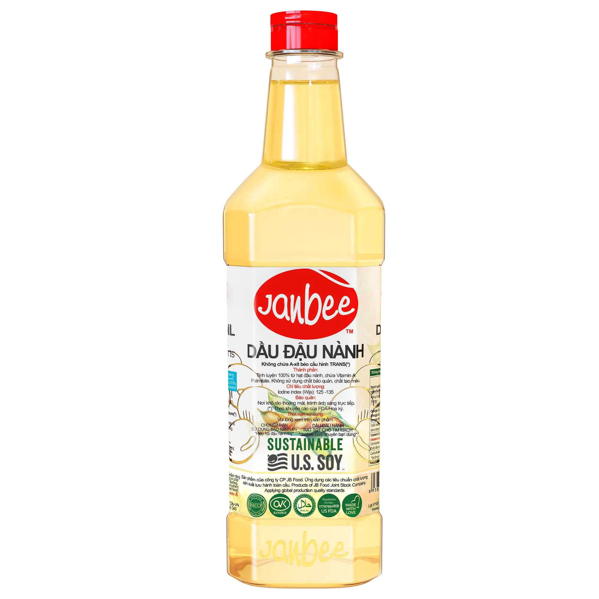 - Dầu Đậu Nành Janbee không chứa a-xít béo trans, loại bỏ nguy cơ tăng cholesterol xấu và giảm cholesterol tốt. Điều này giúp bảo vệ sức khỏe tim mạch, phù hợp với lối sống lành mạnh hiện đại.