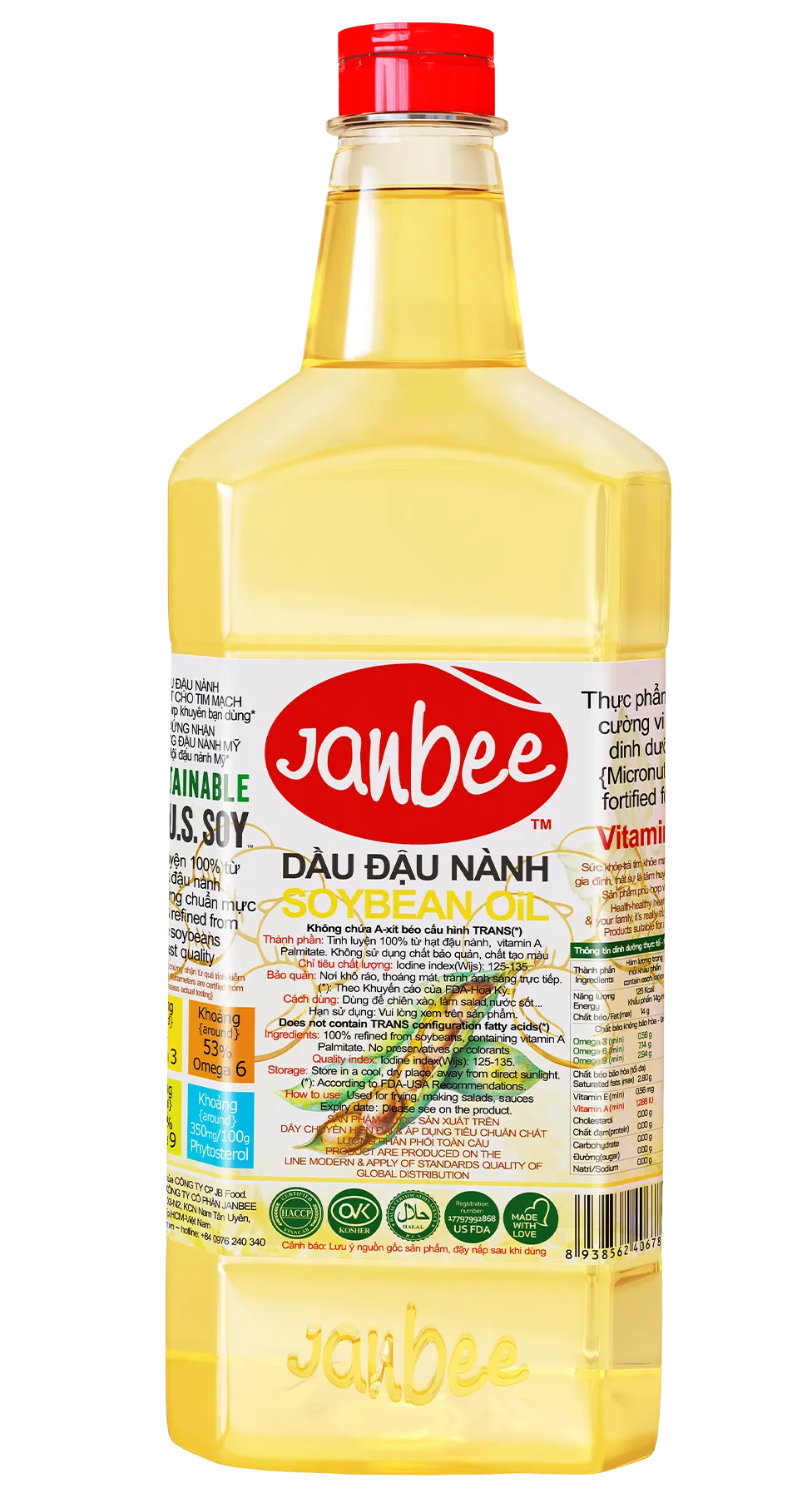 - Dầu Đậu Nành Janbee không chứa a-xít béo trans, loại bỏ nguy cơ tăng cholesterol xấu và giảm cholesterol tốt. Điều này giúp bảo vệ sức khỏe tim mạch, phù hợp với lối sống lành mạnh hiện đại.